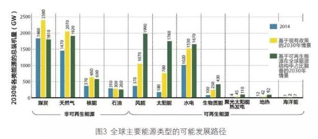 這份報(bào)告的核心結(jié)論之一就是,如果全球經(jīng)濟(jì)一直朝著無(wú)碳化的方向發(fā)展,到2030 年,風(fēng)電必將成為主力電源。國(guó)際可再生能源署認(rèn)為,海上風(fēng)電的總裝機(jī)在2030 年將達(dá)到100GW,但如果能夠從政策層面使可再生能源在全球能源結(jié)構(gòu)中的占比翻番,那么到2030 年海上風(fēng)電的裝機(jī)規(guī)模有望進(jìn)一步擴(kuò)大——風(fēng)電總裝機(jī)將達(dá)到1990GW,其中海上風(fēng)電占280GW。